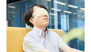 私たちは、さまざまな特性を持つ仲間と一緒に仕事をしています。誰もが健やかでいきいきと働きやすい環境にするため、以前からウォーキングログの推奨によって運動を啓発したり、個室ブースの休憩室を新設するなど、社員の休み時間を有効的に活用するための取り組みを行ってきました。そんな時、ある社員が「めぐりズムのアイマスクはPC作業で酷使した目にあてることで、気分のリフレッシュになる」と教えてくれ、導入を考えるきっかけとなりました。障がいを持つ方の中には、ずっと集中して作業し続けてしまう方もいるため、チャイムを鳴らして意識的に気分転換をしてもらうなどの工夫もしています。「オフィスめぐりズム」の導入後、職種に関係なく多くの社員が利用している印象です。弊社ではこれからも、社員にとっていきいき働ける環境と幸せをサポートできるよう、積極的に取り組んでいきたいと考えています。 明治安田ビジネスプラス株式会社