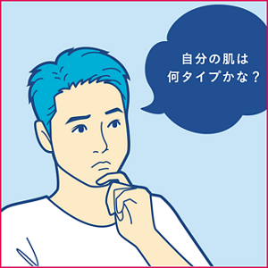 男性用といっても、人によって肌タイプは違います。まずは次の4タイプ「ベタつきが気になる肌」「普通、または肌の場所によってテカったり乾燥している混合肌」「ニキビができやすい肌」「口元、目元がカサついている乾燥肌」のなかで、自分の肌タイプはどれに近いかを把握しましょう。