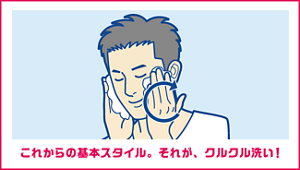 男ならゴシゴシ洗い!そう思っていませんか? ゴシゴシと力まかせな洗顔は、肌を傷めてしまっているかも! そこで、指先で円を描くようにクルクルと肌を洗ってみましょう。 余計な力をいれなくても、肌の汚れがしっかり落ちます。 これからは、男だって、クルクル洗い!