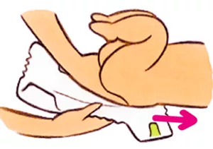 おしりの下にセットする時に奥の方まで深めに入れてください。