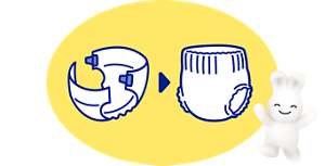 いきなりパンツタイプだけに切り替えるのではなく、よく動き回るお昼の間はパンツ、寝ている間はテープといったふうに、状況によって使い分けてみてもいいかも!