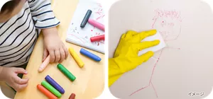 お絵かきに夢中になった結果、ついつい紙をはみ出して床やテーブルを汚してしまう。よくあるシーンですが、お掃除するのはとても大変ですね。そんな、お家遊び中に発生する手ごわい汚れのひとつ、クレヨン汚れの落とし方を紹介します。