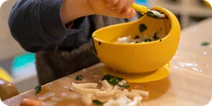 食べこぼし汚れは時間がたつと固着したり、ベタつきが酷くなってしまい、お掃除の負担が増えてしまうことがあります。早めに取り除くよう心がけましょう。