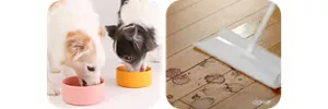 ペットの水や食事を置いておくご飯エリアは、食べこぼしや水はねなどで特に汚れやニオイの問題が起きやすい場所でもあります。毎日のお掃除で清潔な環境を保てるよう心がけましょう。ペットの足跡の汚れも防ぐことができますよ。