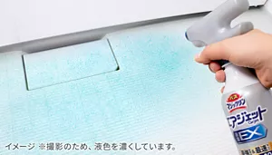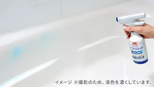 お風呂を出る直前に、浴槽のザラつき・床のヌメリ汚れに「こすり洗い不要のバスクリーナー」をサッとかけてシャワーで流しておきましょう。飛び散った石けんカスなどを毎回落としておくことで、汚れが固着せずたまりにくくなります。