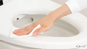 トイレで用を足した後、「こすり洗い不要のトイレクリーナー」をサッとかけておくと、汚れがたまりにくく、消臭対策にもなります。トイレに流せるタイプのシートでサクッと拭き掃除するのも効率的です。