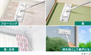 フロア用ワイパーやクリーナーを見えるところに置いて、すぐ使えるようにしておきましょう。気になった時その場で、床のホコリや髪の毛を取り除いたり、食卓をふき取るなどの簡単お掃除が、TVなどを見ながら短時間にできます。