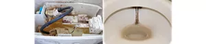 トイレを流し、タンクの給水と同時に手洗い器の穴から酸素系漂白剤をいれ、2-3時間放置後トイレを流します。
