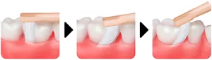 ※歯の模型に水性ペンで着色し、同程度の力で5往復こすった実験(花王調べ)では、ピュオーラ36500 1本1本磨きの方が当社参考品よりハグキのキワ/歯と歯の間において磨き残しが少ない。