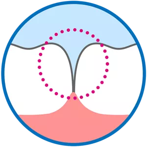 フッ素は、歯へのミネラルの補給を促し、健康な状態に戻す「再石灰化」や、歯垢から出る酸に溶けにくい性質に変えて歯質を強くする「歯質強化」のはたらきがあり、むし歯の発生と進行を防ぎます。また、再石灰化した歯は酸に強くなるため、むし歯になりにくくなります。