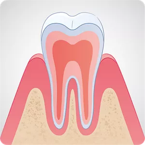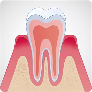 歯と歯ぐきの間にわずかな溝がある程度です。歯ぐきはピンク色で引き締まった状態です。
