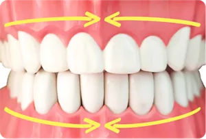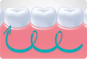 奥からはじめて前に向かって、マッサージする部位は2回に分けて行い、歯ぐきの根元の太い血管を意識してマッサージします。お口全体をやさしく徹底的に。