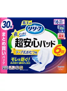 高齢になると、夜間の排尿量は昼間に比べて多くなる傾向がみられます。紙パンツに、高吸収の尿とりパッドを組み合わせることで対応できます。夜用の尿とりパッドは、吸収量・幅等のサイズともに大きいので、何度か排尿があっても対応することができます。紙パンツ専用でないタイプ(テープ式おむつ用)の夜用尿とりパッドは、長さや幅が大きいので、紙パンツからはみ出してモレる心配がありますので、注意が必要です。