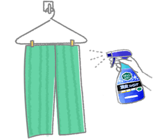 洗たく物を干すときに スプレーしておけば、 着ている間に尿が付着しても ニオイの発生を防ぎます