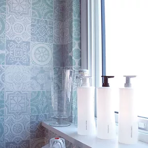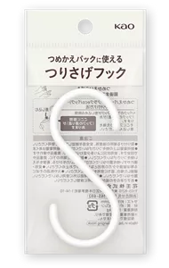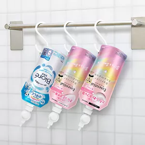 つめかえパックの下部両端には、フックを通せる小さな穴(赤丸で囲んでいる部分)が開いています。